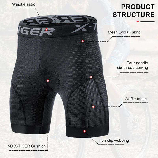 SaleX-TIGER Men's Cycling Underwear Shorts 5D Padded Sports Riding Bike Bicycle MTB Liner Shorts with Anti-Slip Leg Grips