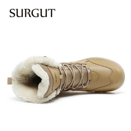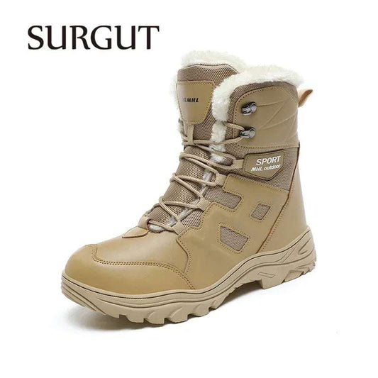 SURGUT High Top Style Snow Boots Men Warm Men Lace Up Tactical Boots Brand Fashion Winter Ankle Boots Leather Outdoor Footwear