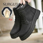 Sold outSURGUT Winter Men Leather Working Boots Classic Men Warm Fur Snow Boots Outdoor Brand Men Motorcycle Boots Lace Up Tooling Shoes
