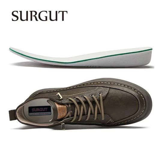 SURGUT Leather Men Ankle Boots Comfortable Platform Walking Boots New Design Soft Leather Office Business Boots Sneakers