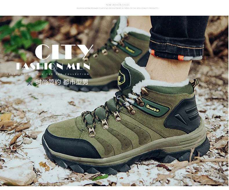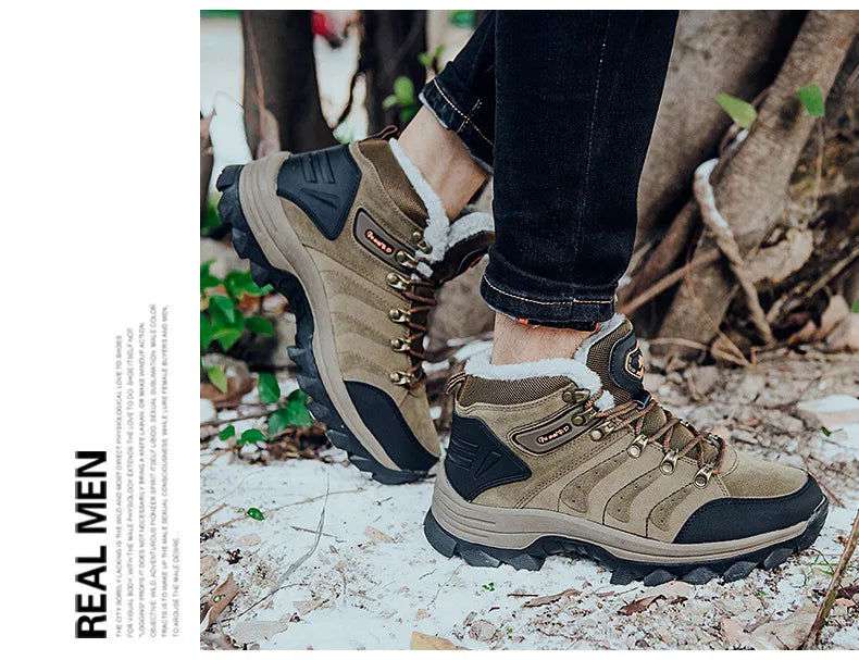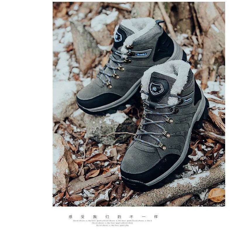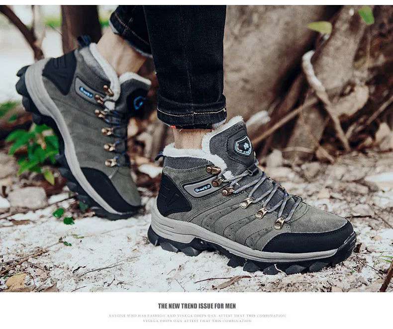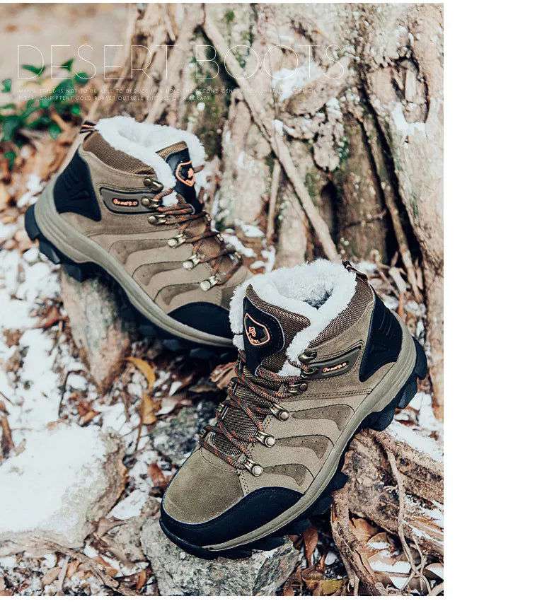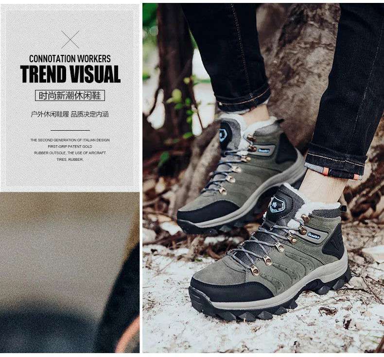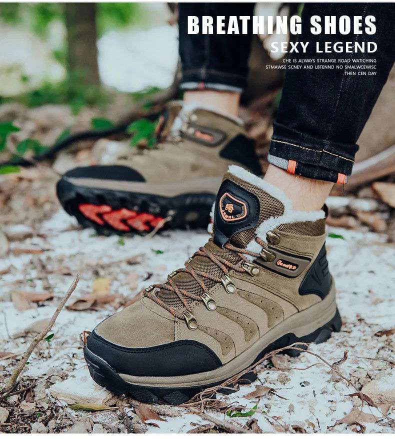 Brand Winter Outdoor Sneakers Men Hiking Shoes Climbing Mountain Tracking Hike Shoes Men Snow Boots Fur Warm Men Trekking Boots
