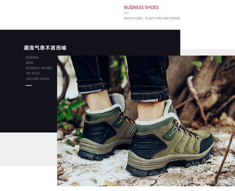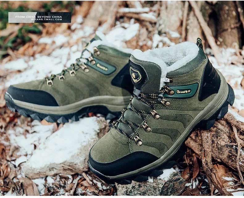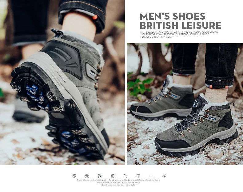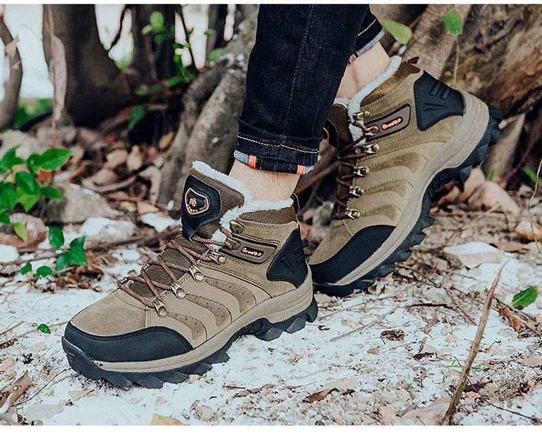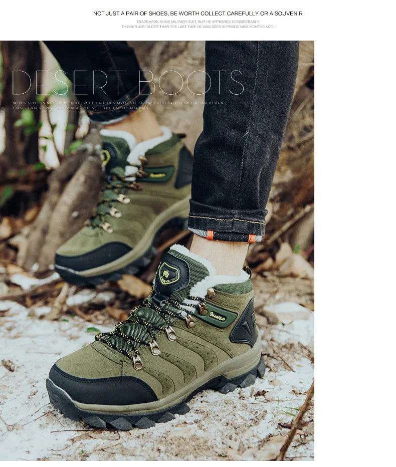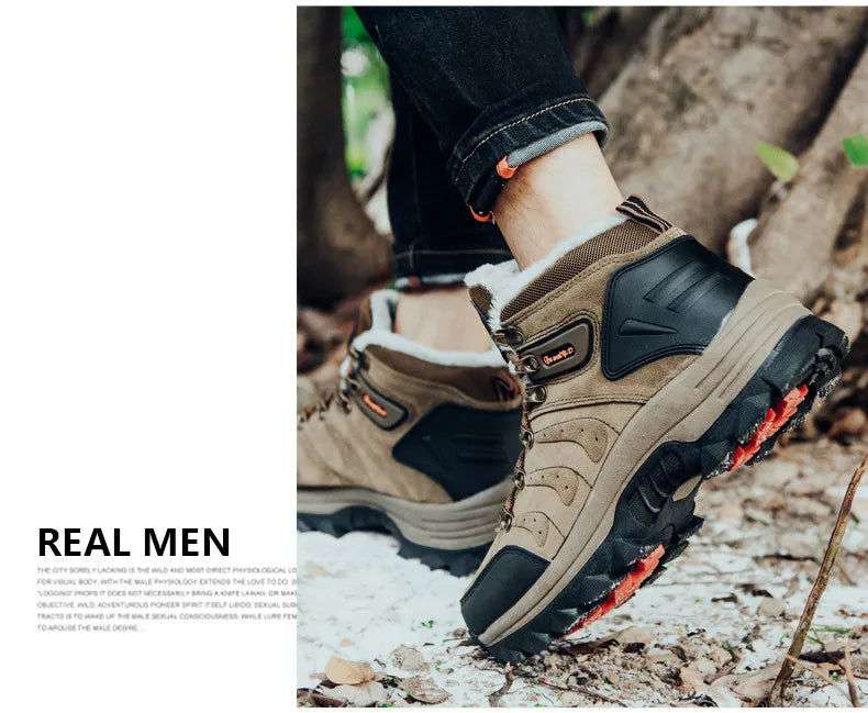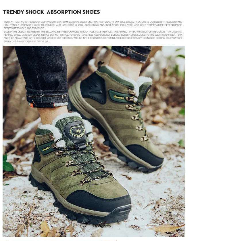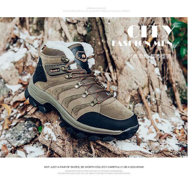 Brand Winter Outdoor Sneakers Men Hiking Shoes Climbing Mountain Tracking Hike Shoes Men Snow Boots Fur Warm Men Trekking Boots