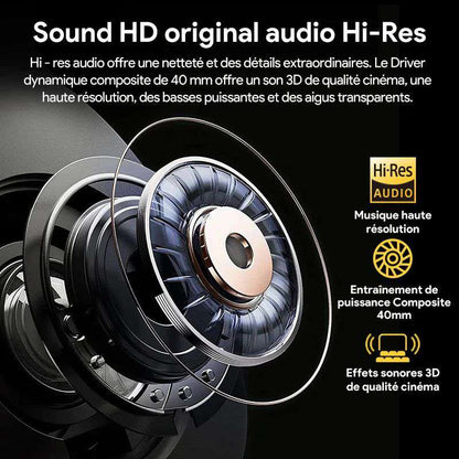 - Hi-Res Original HD Sound: Experience exceptional audio quality with Hi-Res audio and a 40mm composite dynamic driver that delivers rich, detailed sound with cinema-level 3D effects.