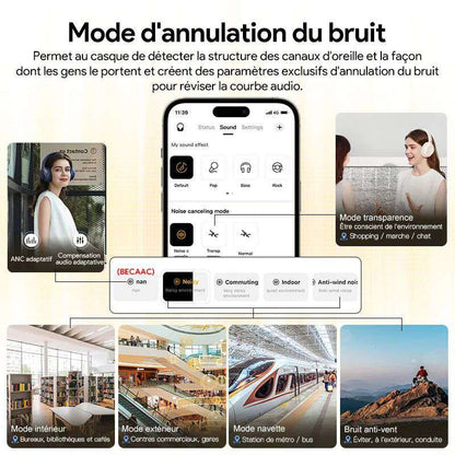 Headset to detect ear-canal structure and the way people wear it and create exclusive noise canceling parameters to revise audio curve that it can deliver same yet premium listening to different people.(Note: This function needs to be turned on manually every time you use it, it cannot be fully self-adapted in real time.)