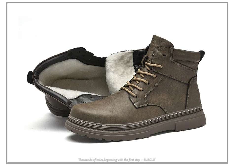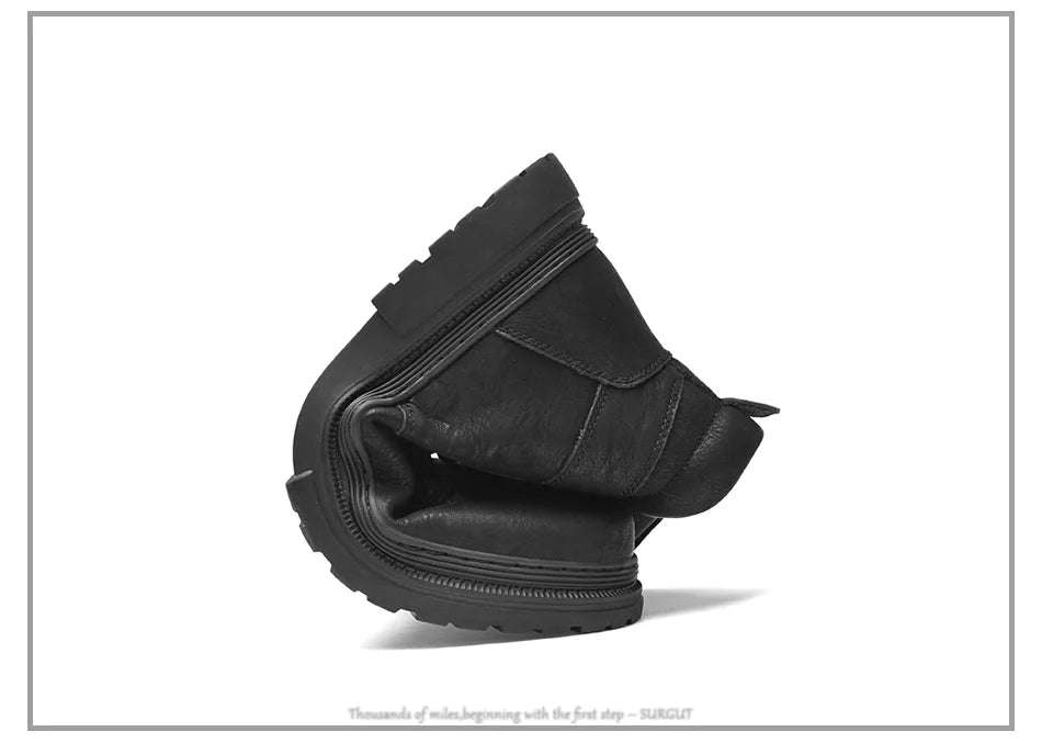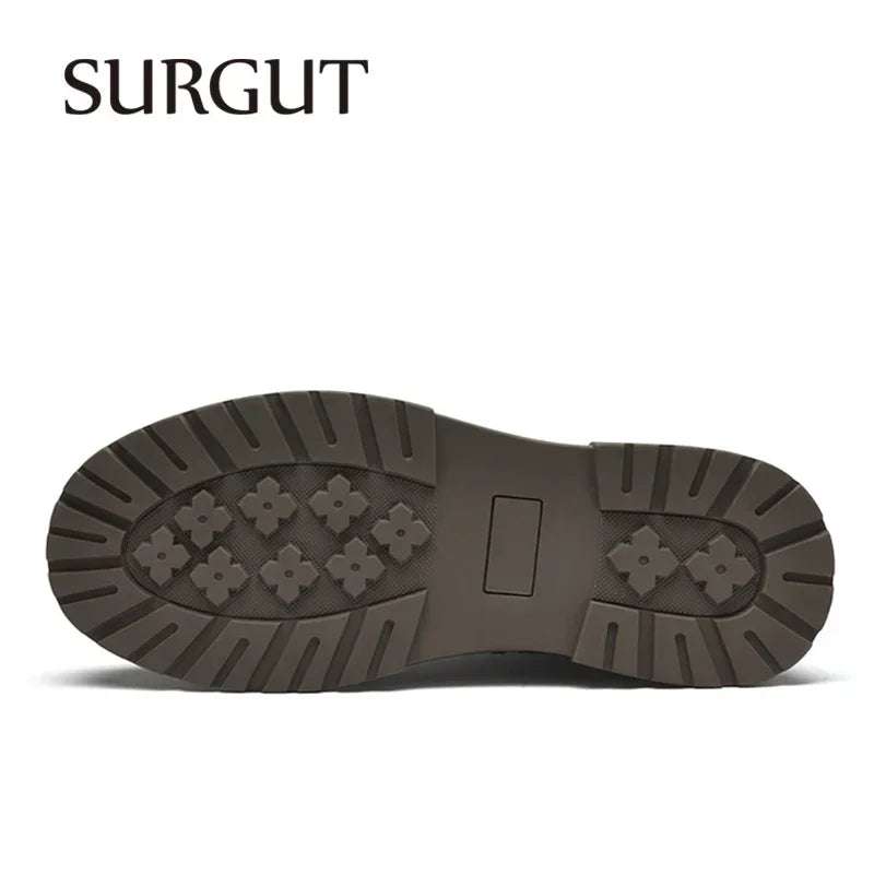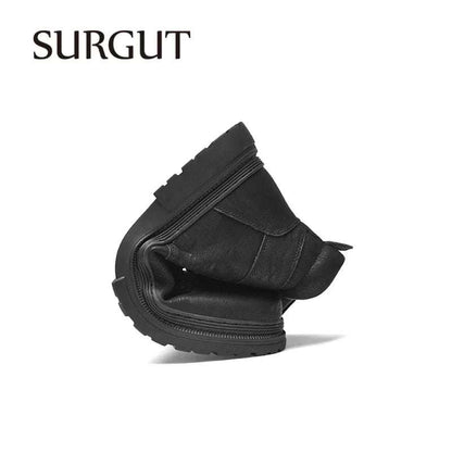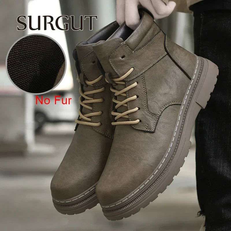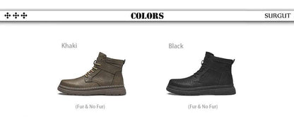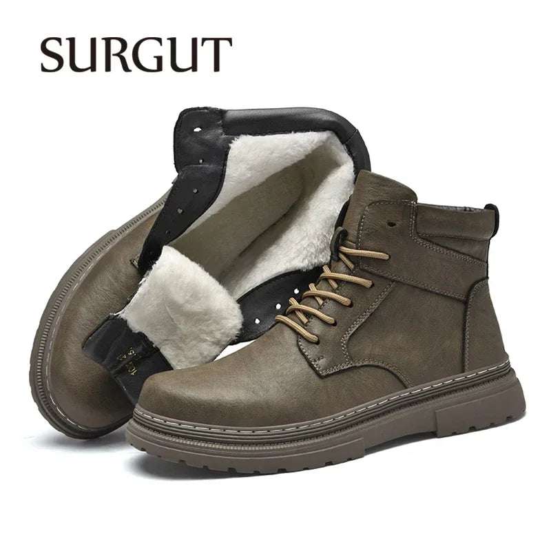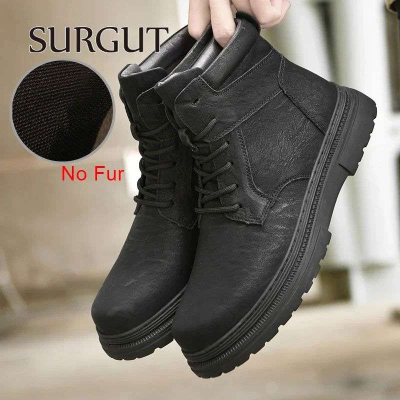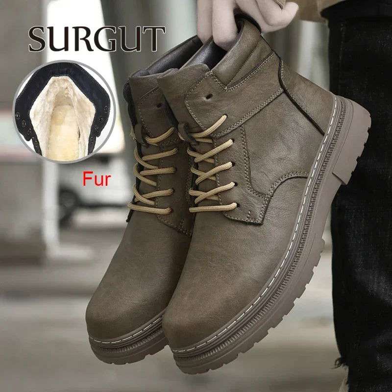 SURGUT Fashion Warm Winter Men Leather Shoes Rubber Waterproof Ankle Boot Outdoor Comfortable Work Fur Snow Boots For Men