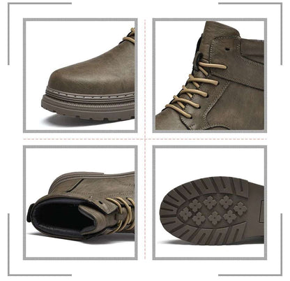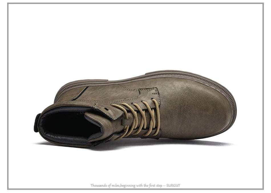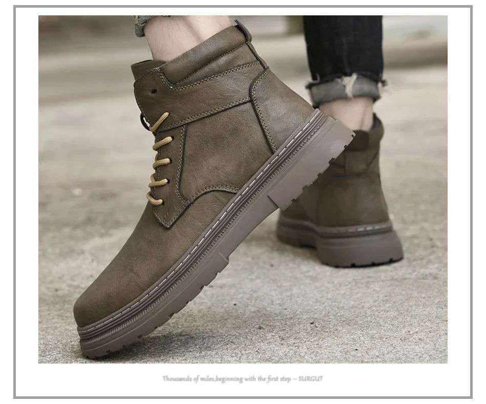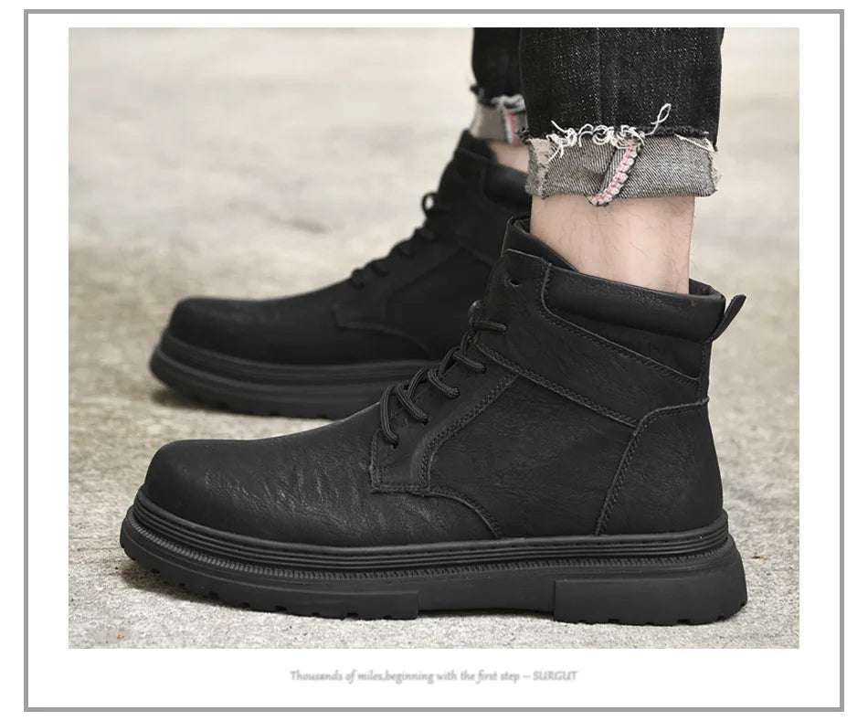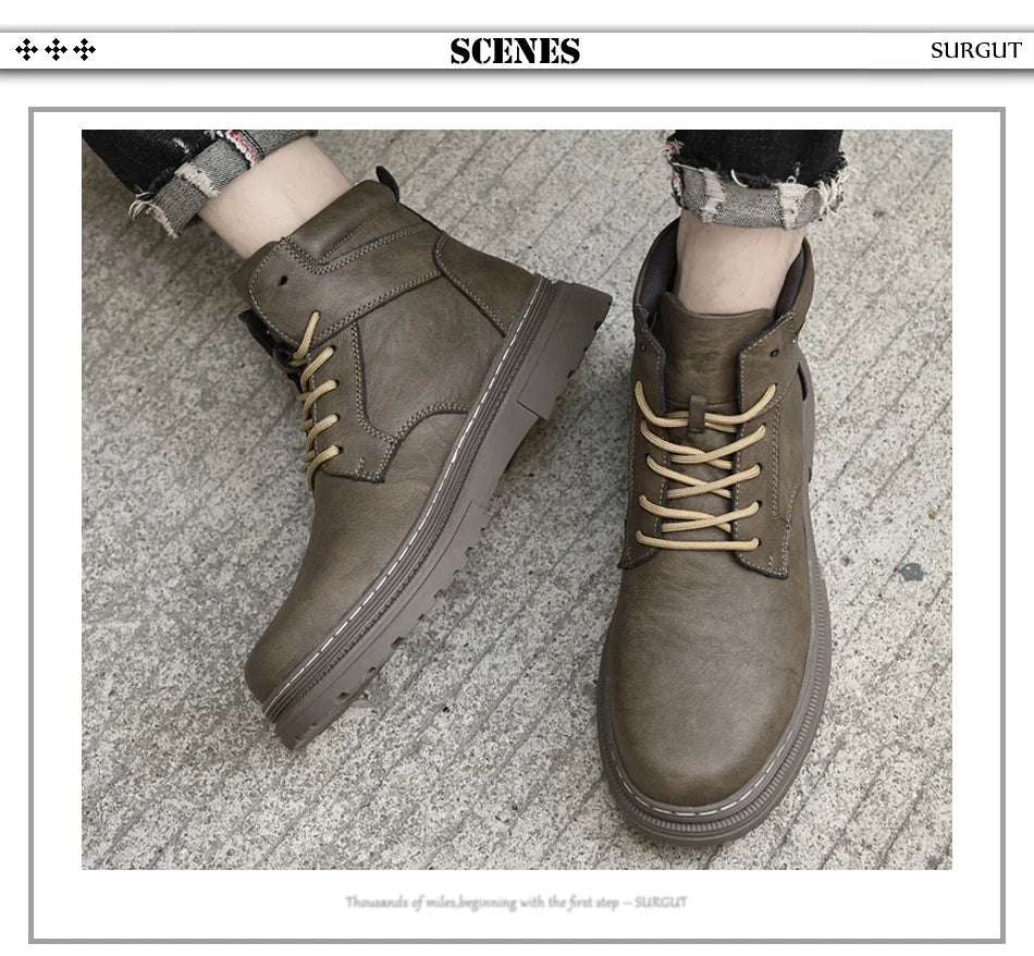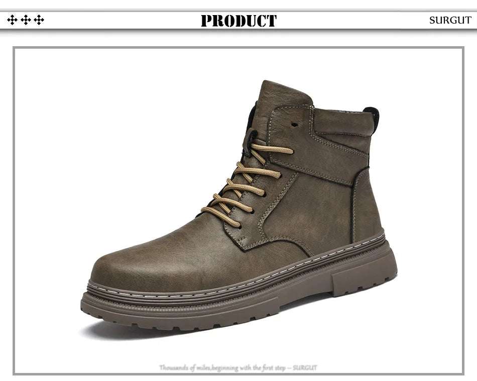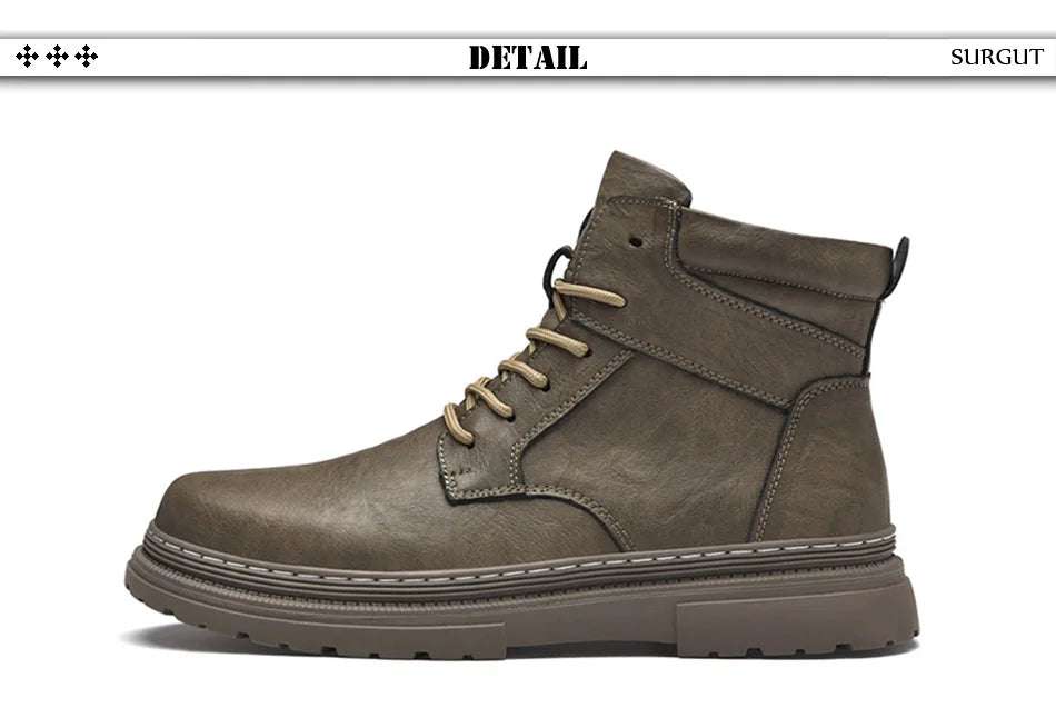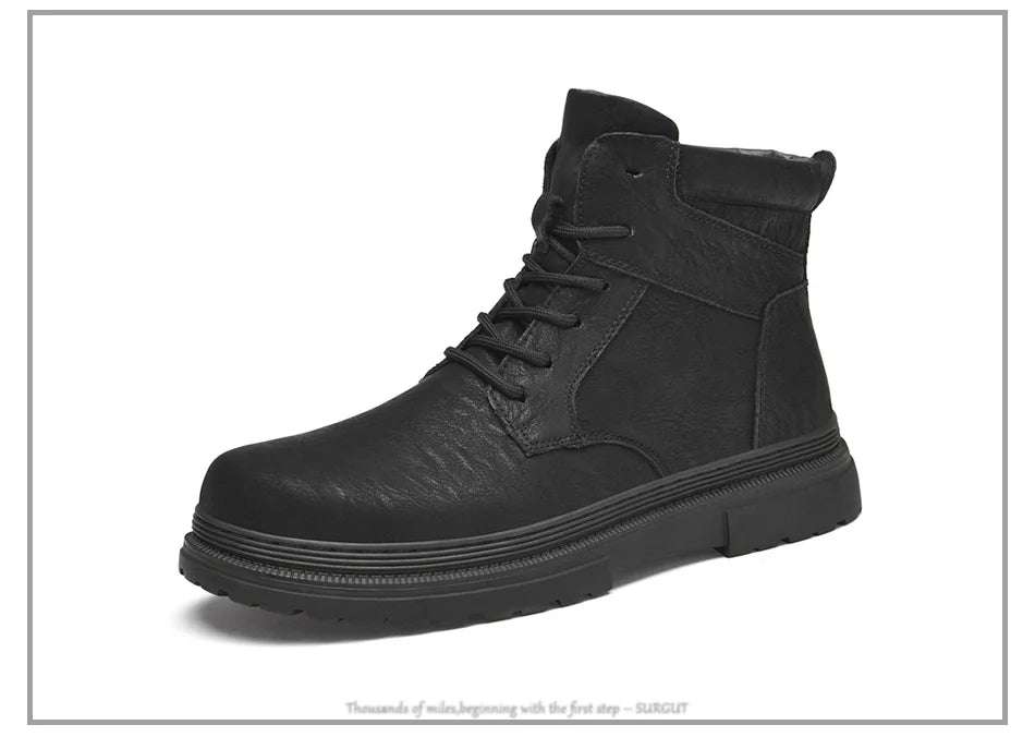 SURGUT Fashion Warm Winter Men Leather Shoes Rubber Waterproof Ankle Boot Outdoor Comfortable Work Fur Snow Boots For Men