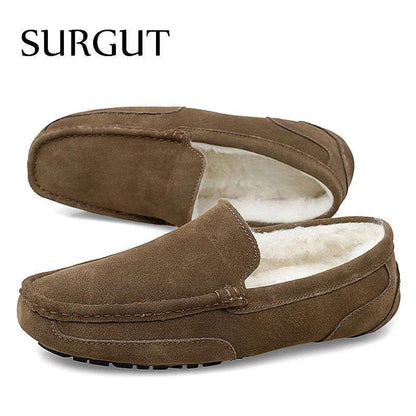 SURGUT Men Casual Shoes Brand Breathable Suede Loafers Moccasins Quality Winter Warm Men Slip On Driving Shoes Plus Size 38-47