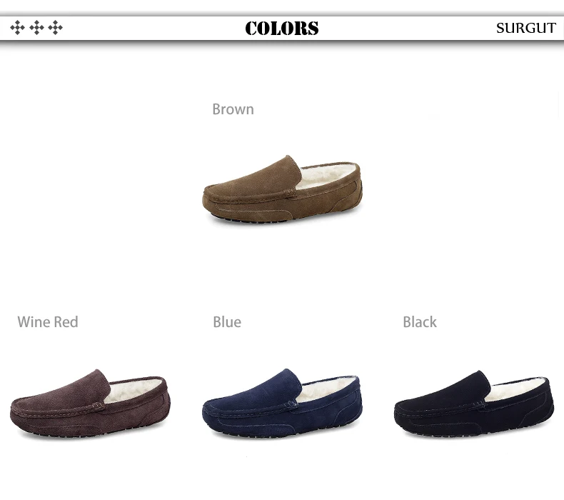 SURGUT Men Casual Shoes Brand Breathable Suede Loafers Moccasins Quality Winter Warm Men Slip On Driving Shoes Plus Size 38-47