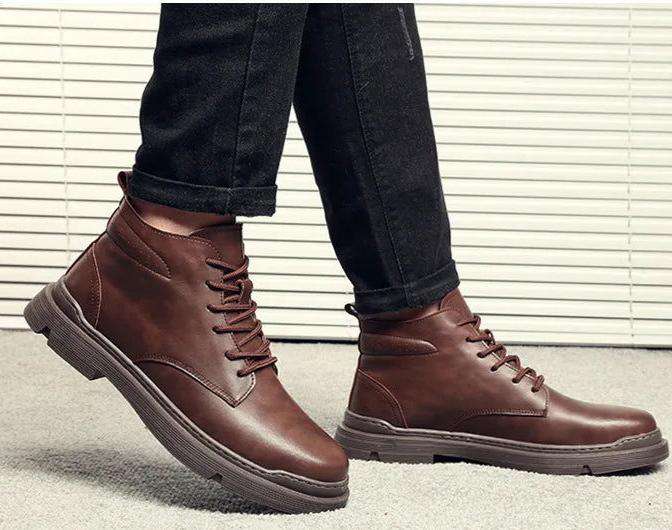Winter Genuine Leather Shoes Men Boots Spring Ankle Boots Shoes Man Punk Casual Riding Flats Equestr Botas Hombre Plus Size